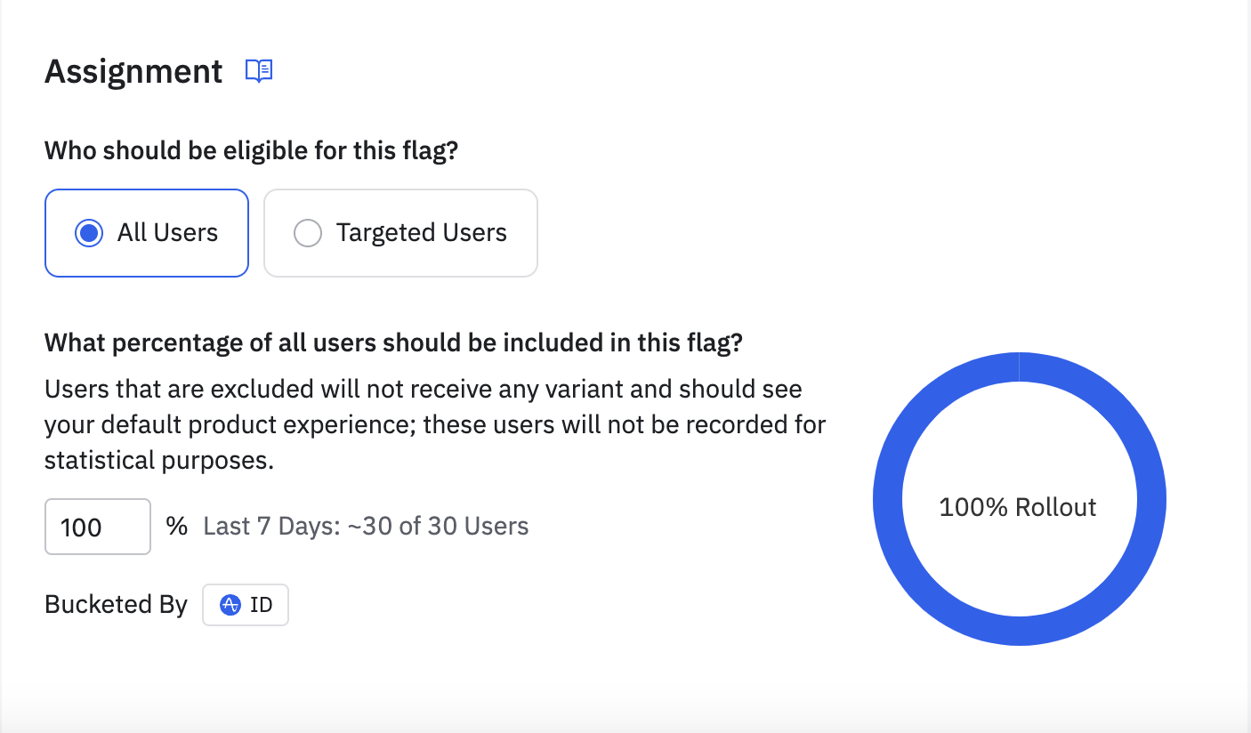 Once the flag is created, we can define which percentage of users will see it - in our example we've chosen to show it to all users in our staging project, but we could equally have only 50% of users see it.